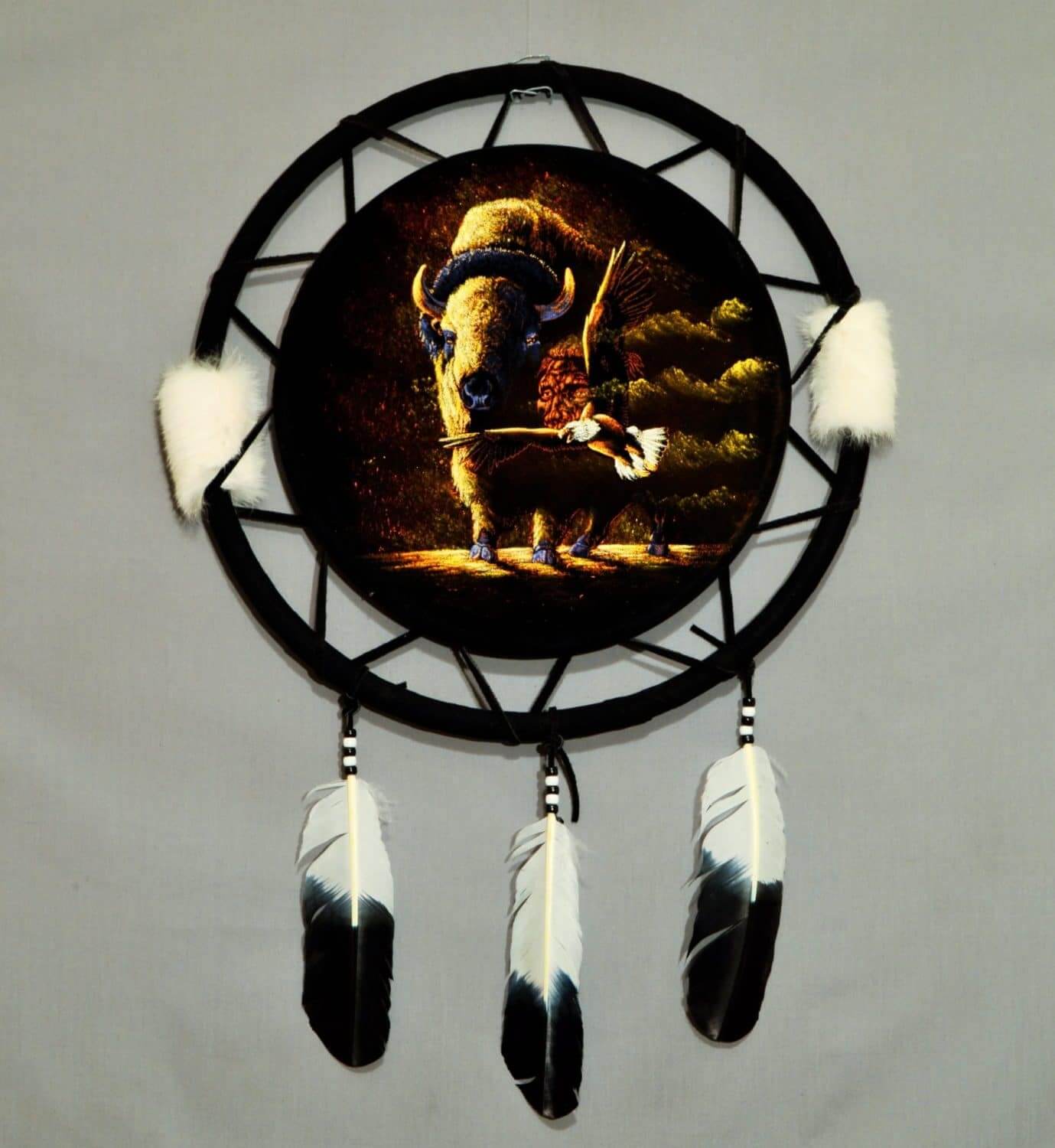 Large Hand Painted Velvet Shield – Buffalo and Eagle